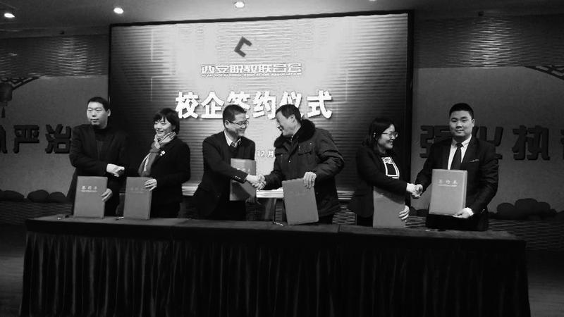 启动仪式上,西安职教联合会以“各方共建、成果共享、校企共赢、企业职工共发展”的服务宗旨,促进校企合作,促成三星(中国)半导体有限公司与西安城市科技职业学校、苏宁云商销售有限公司与陕西新华电脑软件学校、中航富士达科技股份有限公司与西安航空职业技术学院校企合作签约。