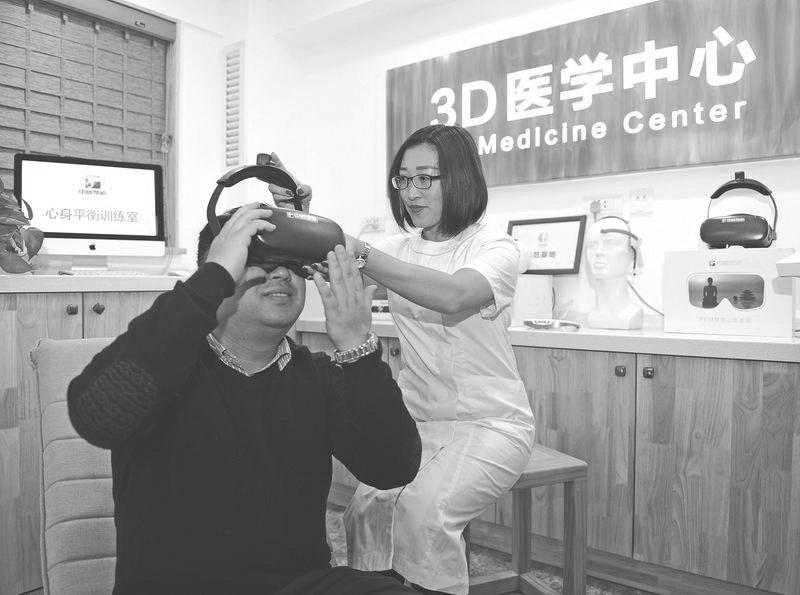 自国家22部委发布《关于加强心理健康服务的指导意见》以来,西安中盛凯新公司作为陕西省政府推荐的特色医药健康企业,在国内500多家医院及企事业单位开展心身整体健康管理服务。该服务项目根据3D医学理论,将西医、中医、心理技术与软硬科技相融合,为民众提供心身一体化特色的诊疗服务。图为该公司3D医学中心的工作人员正在指导市民体验心身平衡训练系统。