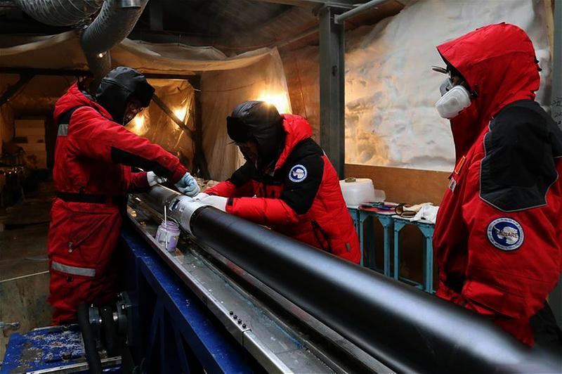 科考队员清理深冰芯钻具