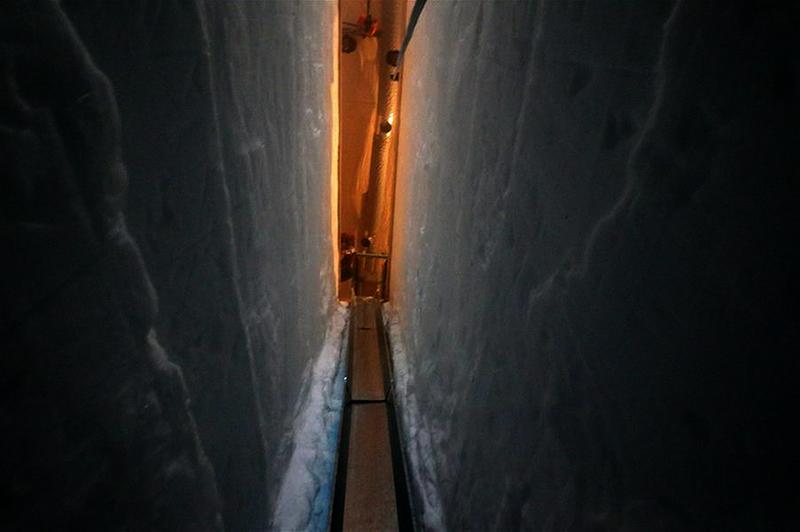 这是深冰芯房内10米深的钻探槽