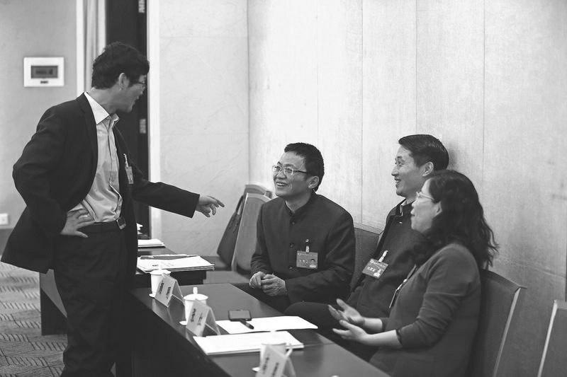 1月28日,在陕西省政协十二届二次会议分组会间隙,委员们继续讨论政府工作报告。张辰摄