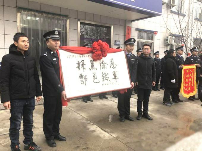 2月18日上午,公安鄠邑分局沣京路派出所内锣鼓喧天,辖区企业和村民自发组织起来,敲锣打鼓、载歌载舞,将一面写着“扫黑除恶鄠邑铁军”的牌匾送到办案民警手中,感谢警方将以五竹镇什王村村民刘某州为首的涉恶犯罪团伙,一举打掉。