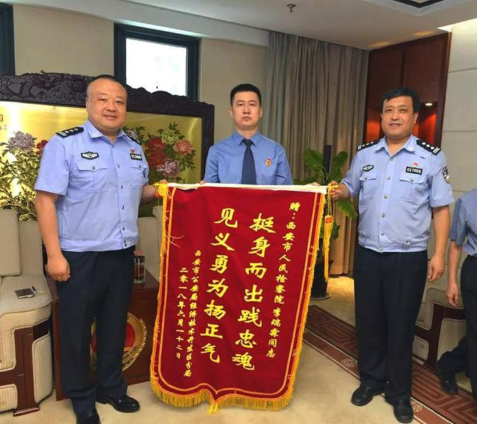 很多同事并不知道李瑞霖所做的一切,甚至对妻子和父母,他也没有说起。直到公安民警来到市检察院,给李瑞霖送来了锦旗和表扬信,对他见义勇为、弘扬正能量的行为表示敬意,身边的同事们才得知此事。