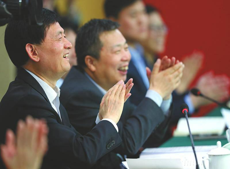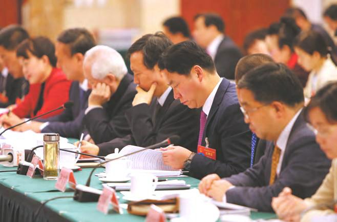 3月9日,十三届全国人大二次会议陕西代表团举行全体会议和小组会议。代表们认真审议全国人大常委会工作报告。 母家亮摄