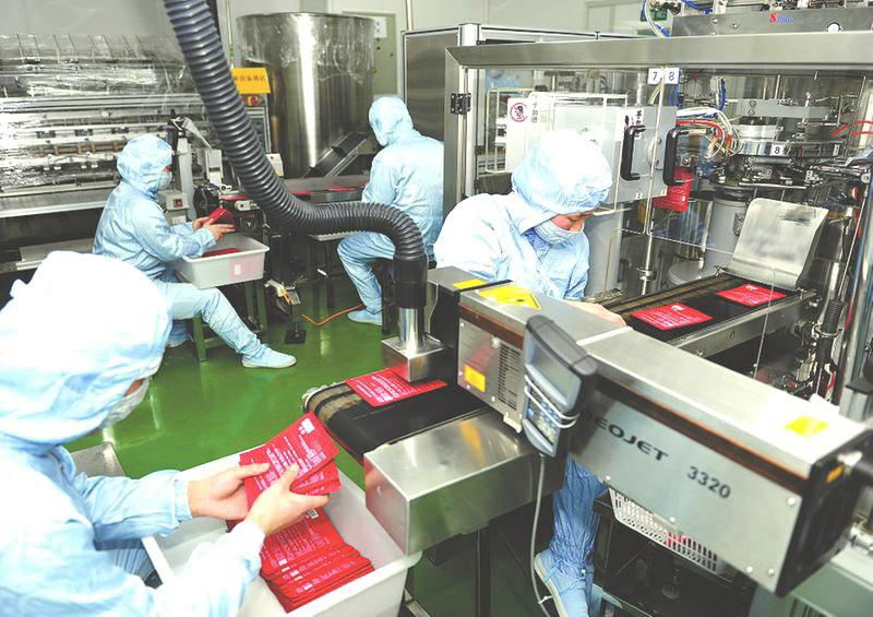 西安巨子生物基因技术股份有限公司研发的“类人胶原蛋白”克服了传统动物胶原蛋白的病毒风险,并基于“类人胶原蛋白”研发近百种产品应用于皮肤医学、医疗器械、预防医学和营养医学等多个领域。图为该公司生产线。