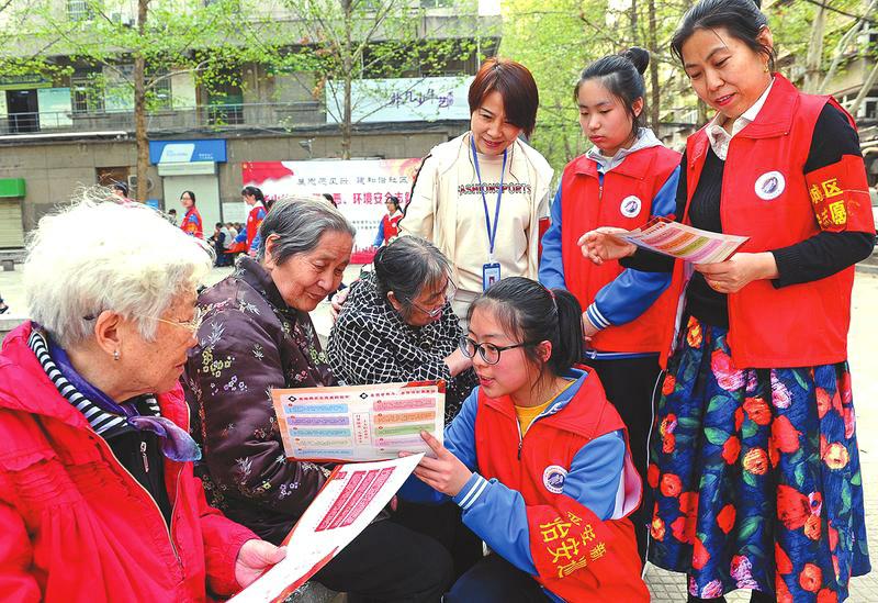 近日,西安市新城区长乐中路街道华山社区联合华山中学,组织社区和学生志愿者走上街头,并通过“小手拉大手”的形式,向社区居民宣传扫黑除恶专项斗争。