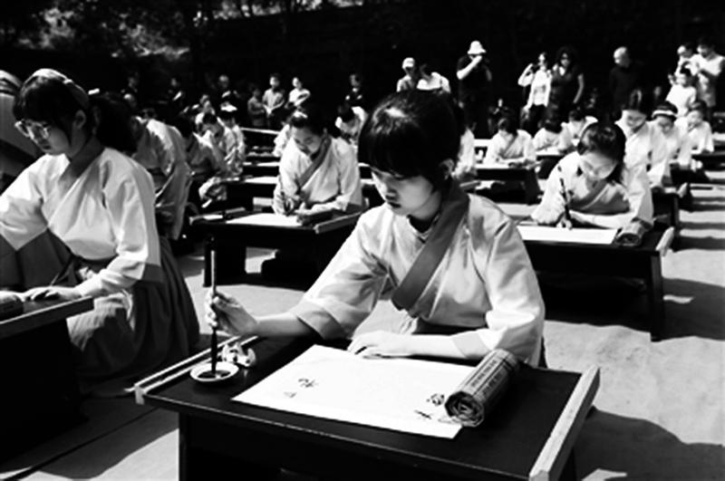 活动上,孩子们在礼仪师的带领下庄重肃穆地行盥洗礼、正衣冠;拜先师,以礼养正、以礼立人;在宣纸上郑重地写下“仁义礼智”和大大的“人”字;在千年古树下立好志向。仪式中,校长胡兵带领孩子们一起诵读经典,明理励志,将活动推向了高潮。