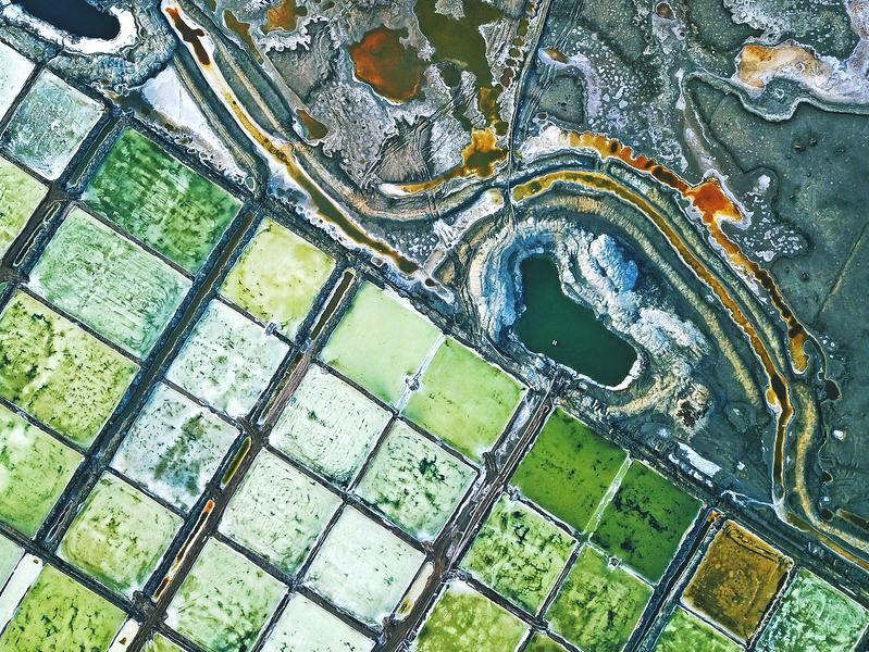 定边县共有大大小小盐湖14个,呈带状分布,总面积98平方公里,已探明资源总储量3101.8万吨。该县将借助定边盐湖独特的盐产品资源,发展以日光盐浴为特色的盐湖旅游,为游客提供别样的旅游体验。图为记者航拍定边盐湖美景。