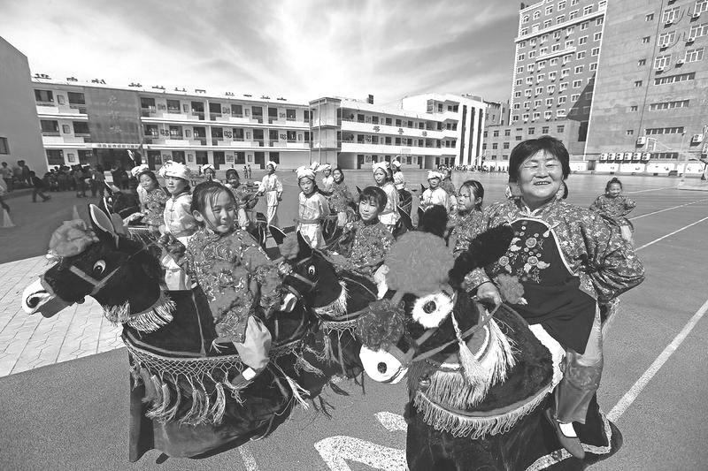 近日,靖边县文化馆邀请非遗传承人祁桂芳来到该县第九小学,给三年级学生教授“靖边跑驴”。“靖边跑驴”是流传在靖边民俗社火中的一种歌舞表演形式,被列入第二批国家级非物质文化遗产名录。
