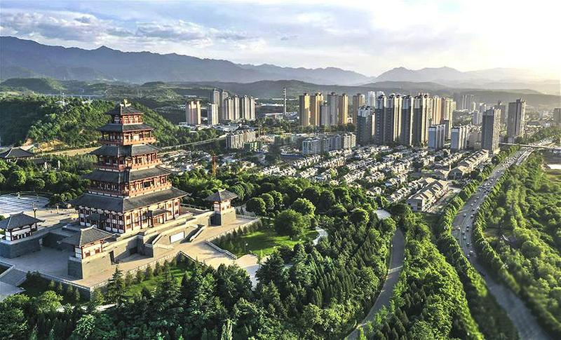 近些年来,陕西省宝鸡市坚持以“生态大花园”统筹绿色宝鸡建设,打造了一批绿化精品景观和市民休闲林,让市民能够“推窗见绿,出门进园”。同时,宝鸡市实行最严格的环保制度,不断改善空气质量;并对穿城而过的渭河进行治理,将其建成了生态河、休闲河、景观河。图为宝鸡市石鼓阁。