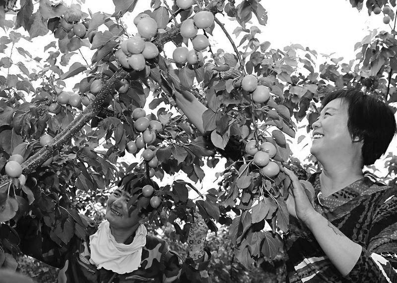 黄金子杏是大荔县晟济农业科技有限公司从新疆引进的新品种,被誉为鲜果中的“王中王”,备受客户青睐。目前,该公司采取“公司+农户+订单种植+订单收购”模式在该县发展栽植上千亩,成为新的富民产业。图为客商们正在采摘黄金子杏。