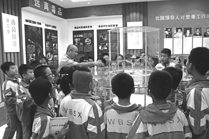 吴堡县禁毒办组织中小学生到吴堡县禁毒教育基地参观。
