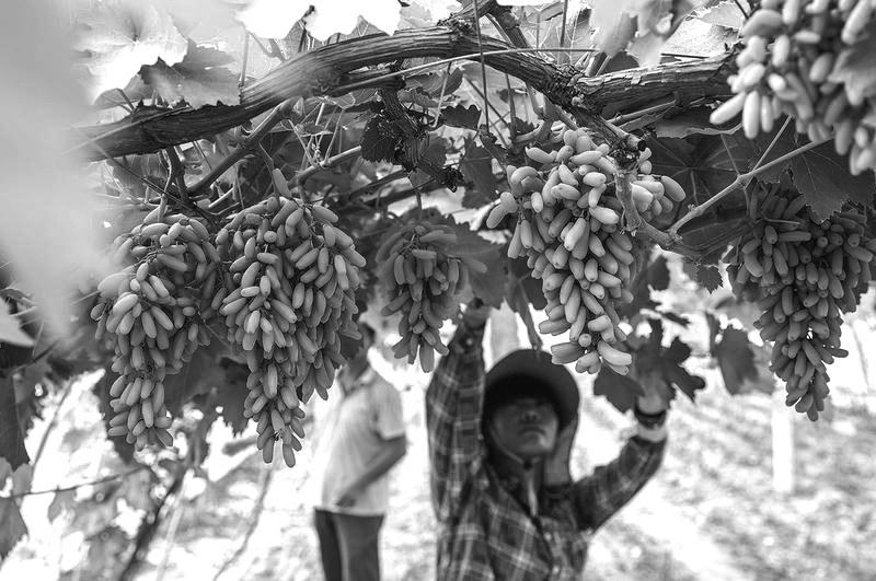6月23日,礼泉县御品种植养殖专业合作社的基地内,工人正在嫁接新品种葡萄“甜蜜蓝宝石”。“甜蜜蓝宝石”葡萄果形奇特,皮薄肉脆无核,且易管理,亩产高。该合作社自从去年从大洋洲引进“甜蜜蓝宝石”并试种成功后,针对旺盛的市场需求,不断加大培育力度,在葡萄主产区进行推广,带动农户致富增收。