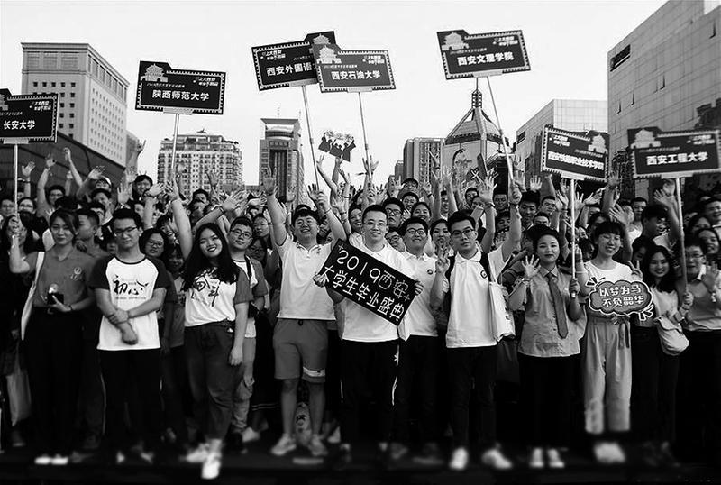 6月25日,“2019西安大学生毕业盛典”在西安永宁门举行,西安30多所高校的500余名毕业生代表汇聚在古老的明城墙下参加庆典活动。