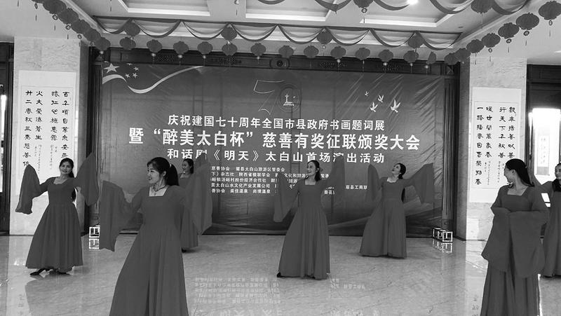 2019年6月28日庆祝建国七十周年全国市县政府书画题词展暨“醉美太白杯”慈善有奖征联颁奖和话剧《明天》演出在太白山成功举办。此项活动吸引了来自全国二十多个省市的文化从业人员,有力地促进了太白山旅游产业的发展。