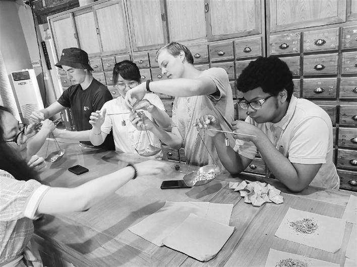 近日,北京语言大学与哈佛大学的暑期汉语合作项目——哈佛北京书院社会实践活动在位于西安市兴庆宫公园的陕西省非物质文化遗产“清·太和医室”举行。来自哈佛等高校的美国大学生走进太和医室中医药文化馆,现场体验四诊、推拿、传统水丸制作等传统中医药技术。