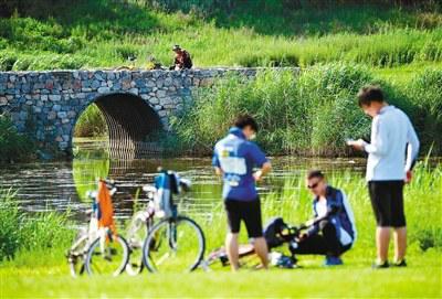 近年来,陕西省在对渭河进行综合治理的基础上,建成“八百里秦川渭河沿岸全民健身长廊”,惠及渭河沿岸宝鸡市、咸阳市、西安市、渭南市、杨凌示范区、西咸新区四市两区的群众。该健身长廊共建成24个全民健身中心(园区)、19个运动公园、99个全民健身活动站点,各类体育健身场地及器材达1.39万个(件)。图为7月5日,自行车爱好者在西安渭河城市运动公园休息。