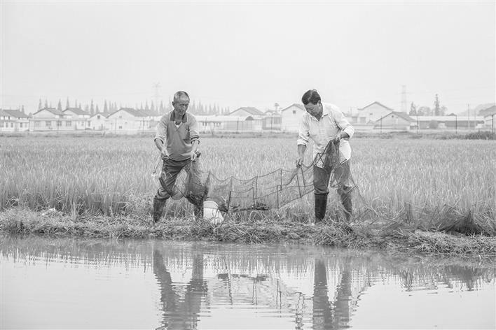 脱贫攻坚以来,勉县引进了小龙虾养殖产业,建成养殖基地1000余亩,并积极探索“虾稻连作”,实现“田中稻、水中虾、虾稻共生、互惠互利”的立体循环种养模式,带动农户增收致富。图虾农在该县周家山镇周家山村“虾稻连作”基地捕捞小龙虾。