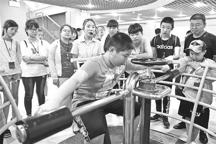 7月25日,咸阳市三原县城关街道办事处组织辖区内26名建档立卡贫困家庭的初中学生来到西安交通大学、陕西省科学技术馆进行参观学习,了解航空航天、电磁学、力学、光学等方面的科学知识。图为学生们在体验中了解角动量守恒方面的物理知识。