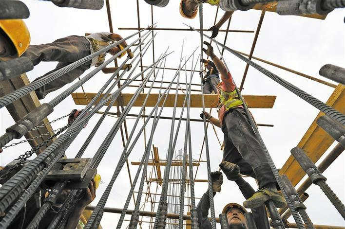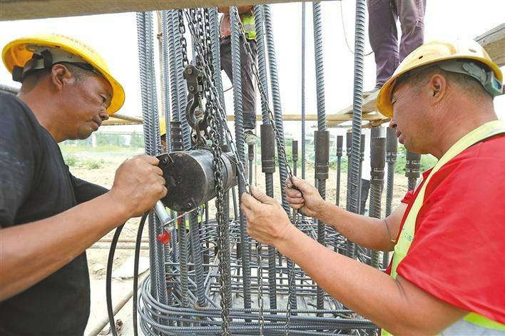 近日,由中交二公局第四工程有限公司承建的西安外环高速公路南段LJ-1工程工地,建设者正在紧张施工中。截至目前,项目共完成桩基109根,立柱70根,系梁35道,盖梁22个,承台4个,肋板式桥台1座,累计完成进度产值2819.802万元。图为工人在进行墩柱钢筋施工。