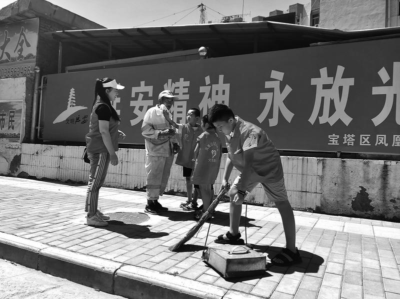 7月24日一大早,北关小学叶晨浩、张嘉琦等几位同学在家长的陪同下主动来到社区开展暑假社会实践活动。为了让几位同学的实践活动更有意义,经社区研究决定,由社区工作人员带领几位同学体验“保洁员的一天”。