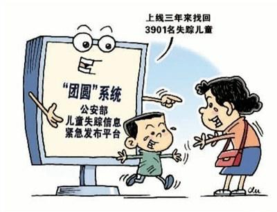 公安部儿童失踪信息紧急发布平台“团圆”系统上线3年来,共发布走失儿童信息3978条,找回3901名失踪儿童,找回率达98%。