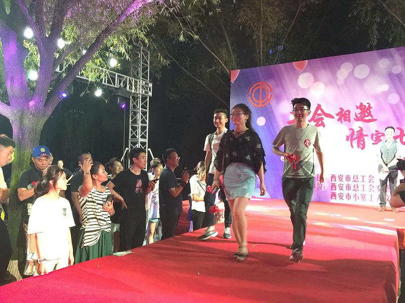 8月7日晚上,“工会相邀情定七夕”千名青年单身职工联谊会在西安市城市运动公园浅水湾举办。活动现场,来自西安市各机关、区县、企事业单位的一千余名单身男女职工观看了“不忘初心牢记使命”——西安市总工会主题教育图片展以及“聚焦主责主业竭诚服务职工”——西安市总工会2019年创新工作图片展。在个人风采展示区,青年职工们热切的在汇聚了千名职工风采的展板上寻找着自己的心动对象。深情告白区,青年们争相将自己的心意留在告白墙上,期盼着缘分如期而至。