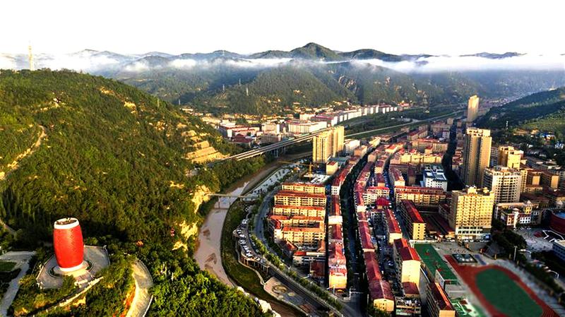 陕西省延安市安塞区自1999年实施退耕还林以来,将退耕还林工程与特色林业产业发展相结合。目前,该区共完成退耕还林建设任务142.38万亩,森林覆盖率已由1998年的18%提高到34.68%;该区共栽植山地苹果40多万亩,既发挥了退耕还林的生态效益,也让老百姓有了长效、稳定的产业。图为青山脚下的延安市安塞区城区。