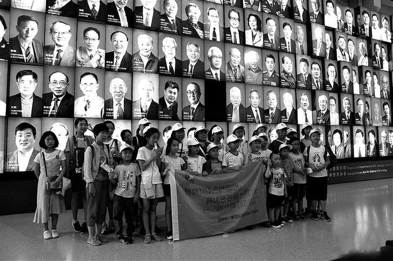 8月21日,观众在上海科学会堂的院士墙前留影