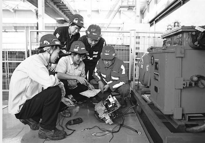 陕北矿业公司张家峁矿全员创客小组正在研究开关故障排除办法 “铜川矿区以前有2万多名员工,一年可生产煤炭1000万吨左右。而如今陕北矿业公司7000多名员工,每年生产煤炭7000万吨。”7月17日下午,陕西煤业股份有限公司董事长闵龙用一组数据,向前来实地调研的投资者展示了企业员工生产工效的发展变化。
