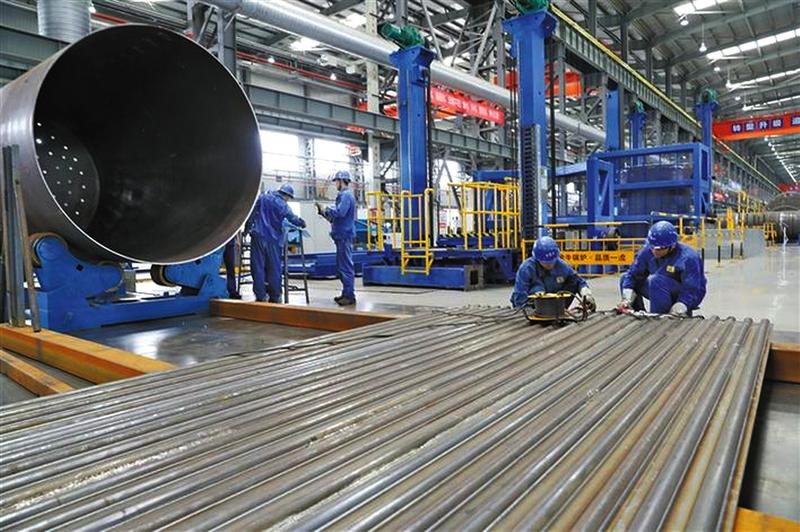 8月22日,陕西建工金牛集团股份有限公司车间内,工人们在对节能环保锅炉进行加工作业。据悉,该企业拥有专利20多项,在超低氮排放技术、煤炭的高效清洁利用技术等方面全国领先。