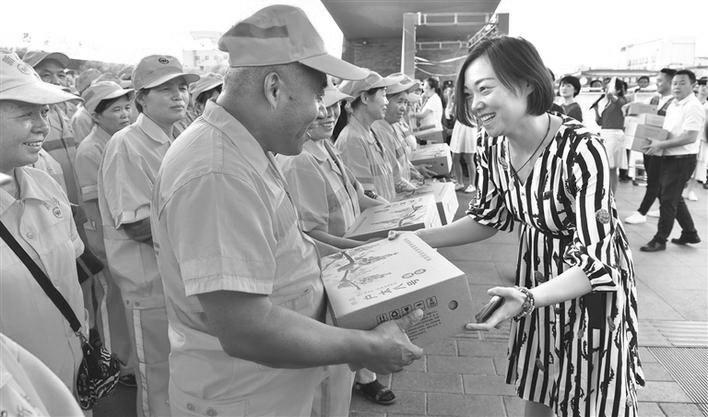 近日,由共青团西安市委等多家单位共同支持的“爱心葡萄,甜动全城——为普通人点赞”公益捐赠活动在西安市火车站广场举行。现场1500公斤爱心葡萄被赠给保洁员和家属。图为收到爱心葡萄的保洁员高兴得合不拢嘴。