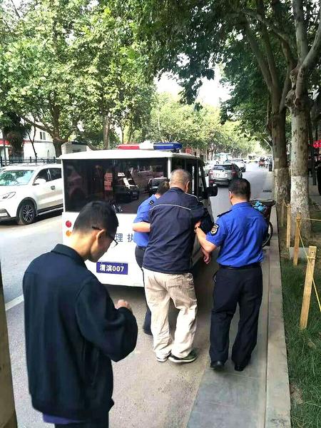 9月5日上午7时许,宝鸡渭滨区城市管理执法局第五执法中队中队长靳新宇,副中队长邓振英在新建路西段巡查途中遇到两辆电动车相撞的交通事故,一名老大爷被撞倒在地,神情痛苦,两位队长立即招呼队员李少春,陈浩辉上前,查看现场情况,一边救护伤者,一边拔打120,122救援电话,在交警和医院救护人员赶到现场前及时处置,并临时指挥现场交通。直到交警及医护人员赶来将现场及伤员交给他们后才离开。过往群众纷纷点赞,受伤大爷也感激的说,“多亏有你们“!