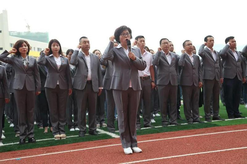 全体教师在孙郡霞校长的带领下举起右手,庄严宣誓: