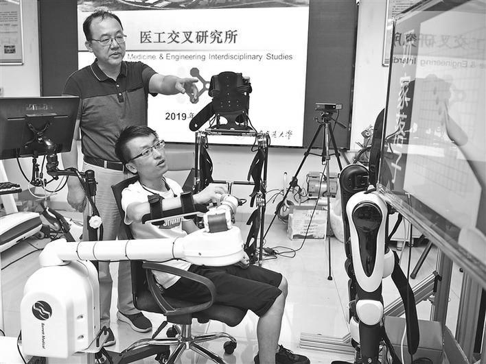 西安交通大学机械工程学院医工交叉研究所研发的脑机接口及康复机械,利用大脑与机器的双向通信能力,让瘫痪患者用大脑可操控机械臂运动。截至目前,该研究所已研发成功脑控汉字拼写系统、脑控外骨骼康复机器人、脑控无人机等康复器械,为脑中风、截瘫等患者提供了康复新技术。