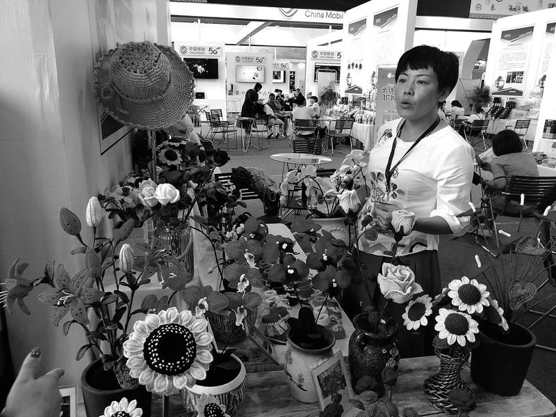 “我们展出的手工彩织艺术钩花,在西安电子商务博览会上展示我们的创业成果”。陕西兴平市的创业者对记者说。