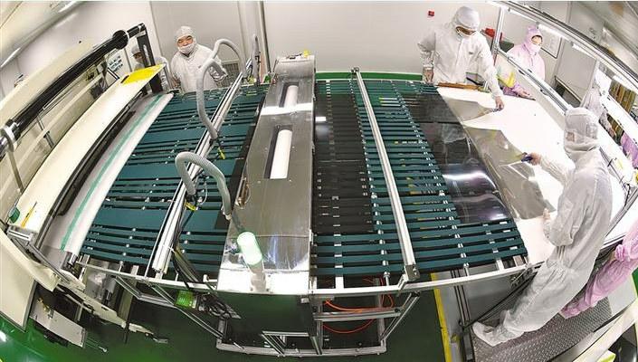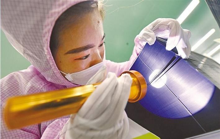 7月23日,工人在咸阳高新区冠石科技有限公司无尘生产车间裁断工序上作业。该企业主要生产加工大型偏光片产品,上半年累计产量约三百二十万片,产值达九千万元。