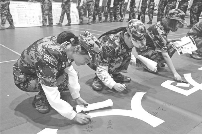 近日,第六届国家网络安全宣传周主题活动走进渭南职业技术学院,渭南市委宣传部、渭南市委网信办等部门联合该市公安局高新分局,为正在军训的新生们上了一堂精彩的法治宣传课。图为学生们自觉签名,争做新时代中国好网民。