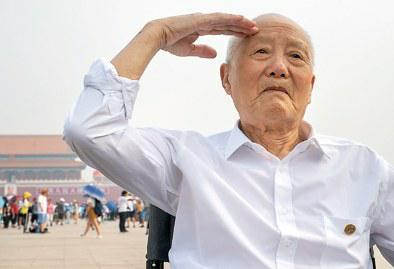 张富清老人在北京天安门广场向人民英雄纪念碑敬礼 1948年2月,他在陕西宜川县瓦子街参加革命,开启了自己的英雄之旅。
