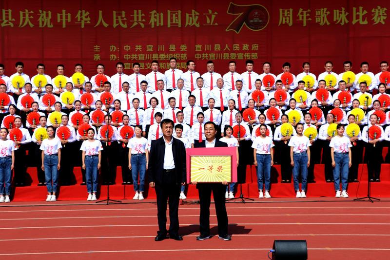 矫健的步伐迎着朝阳稳步前进,嘹亮的歌声歌颂着祖国繁荣昌盛。为庆祝新中国成立70周年,结合“不忘初心、牢记使命”主题教育,9月26日,由中共宜川县委、宜川县人民政府主办,宜川县委组织部、县委宣传部、文化和旅游局承办的以“不忘初心牢记使命放歌新时代唱响新征程”为主题的歌咏比赛在宜川县体育场隆重举行。“祖国,我爱你!祖国,我爱你!祖国,我爱你……”活动在所有人员的祝福声中落下帷幕,歌声、欢呼声久久回荡在现场。大家纷纷表示,歌声振奋人心,活动高潮不断,让人热血沸腾,不由的跟着合唱队一起歌唱,激发起内心对党和祖国的热爱之情。