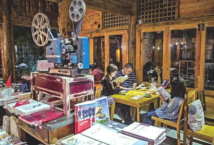 10月3日,读者在位于留坝县老街的留坝书房内看书。 赵晨 摄