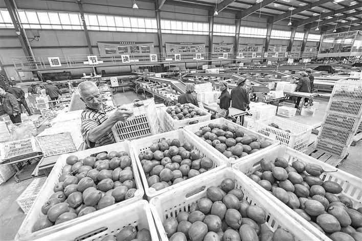 近日,眉县齐峰果业猕猴桃包装生产线上,工人们正在进行分拣、包装作业。近年来,齐峰果业大力推行“龙头企业+专业合作社+贫困户”“扶贫基地+贫困户”等模式,以猕猴桃产业带动贫困户增收。