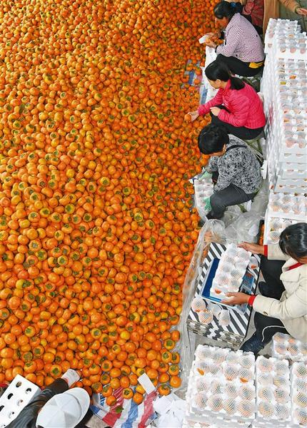 近日,由浙江格家网络技术有限公司、富平县农业局、西安秦麻麻生态农业开发有限公司主办的“中国田·富平甜2019电商扶贫助农”主题活动启动。斑马会员将发挥会员制电商平台的优势,为富平优质脆柿子走向全国搭建桥梁。图为渭南市富平县曹村镇邹村村民正在将脆柿子包装打包。