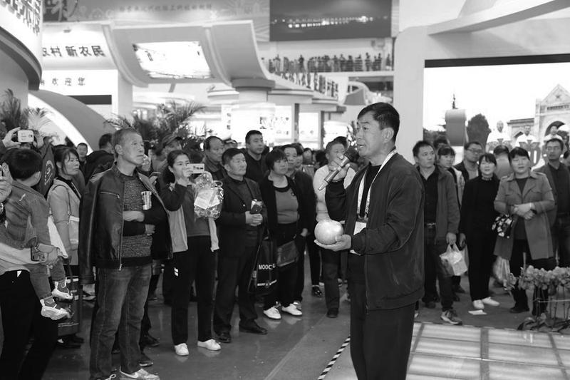 10月23日,在第26届杨凌农业高新科技成果博览会c馆陕西“3+X”特色现代农业展馆前,职业农民王治慧用一首嘹亮的陕北民歌,向现场观众推介家乡的苹果,赢得在场观众的拍手称赞。他高兴地说:“我希望借助农高会的舞台把陕北的苹果,家乡的特色推向全国。”