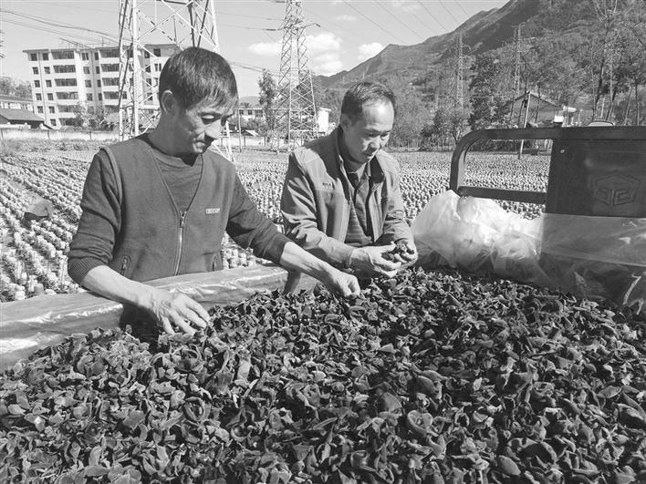 近日,在商洛市镇安县米粮镇光明村的地栽黑木耳产业基地里,务工人员正在采摘木耳。今年以来,光明村引资逾40万元,并流转村民土地18亩发展地栽黑木耳,增加20余个就业岗位,户均年增收1.3万元。当地通过发展黑木耳产业,实现了村民流转土地得租金、村民回村务工得薪金、村集体入股得股金。