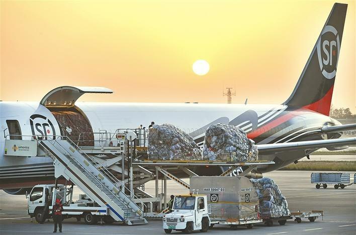 西部机场集团航空物流公司在进一步丰富服务产品、提升运行保障效率、集聚资源搭建平台的同时,调动市场主体积极性,发挥行业引领作用,助力西安咸阳国际机场“一带一路”航空物流枢纽建设。截至10月28日,西部机场集团航空物流公司完成货邮吞吐量23.23万吨,同比增长18.6%。图为机场装卸工人正在从一架货运飞机上卸载货物。