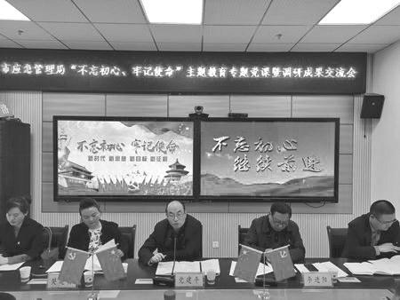 商洛市应急管理局副局长杨明同志为全体党员干部做了题为《不忘初心、践行使命,争做合格的应急管理人》的党课辅导,生动阐述了新时期应急管理干部应当如何以主题教育为契机,发扬团结奋斗、开拓创新的精神,加快推动应急管理事业改革发展,当好党和人民的“守夜人”,当好人民群众身边的“安全卫士”。该市应急管理局县级以上领导干部结合前期深入基层一线调查研究情况开展了调研成果交流,深刻剖析当前应急管理、安全生产、防灾减灾救灾工作中存在的矛盾和短板,就如何破解新时代新形势下应急管理工作的瓶颈从不同角度提出了许多好的方法和建议。大家经过交流讨论一致认为,要进一步把调研报告修改完善,切实把调查研究成果运用好,作用发挥好,及时转化为落实应急管理工作思路和举措。