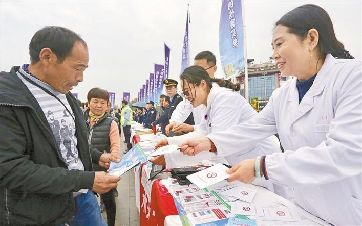 近日,“无烟西安健康生活”《西安市控烟吸烟管理办法》实施一周年活动在大雁塔北广场举行。现场医护人员和大学生志愿者向过往市民发放宣传册,讲解吸烟带来的危害。