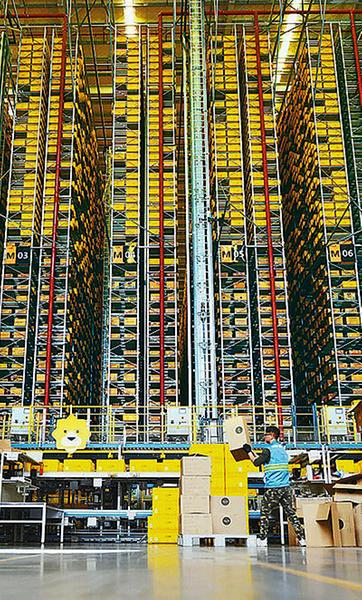 日前江苏南京某物流中心内,工人在为即将到来的“双11”紧张备货 方东旭 摄