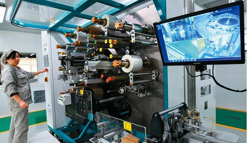 据悉,西安西电电力电容器有限责任公司以市场营销为龙头,今年参与投标的特高压项目全部中标,上千台电压互感器和电流互感器产品出口巴基斯坦、柬埔寨等国家。据统计,今年前10个月新增订货同比增长59.61%,营业收入同比增长19%。图为工人正在操作全自动元件卷制机。